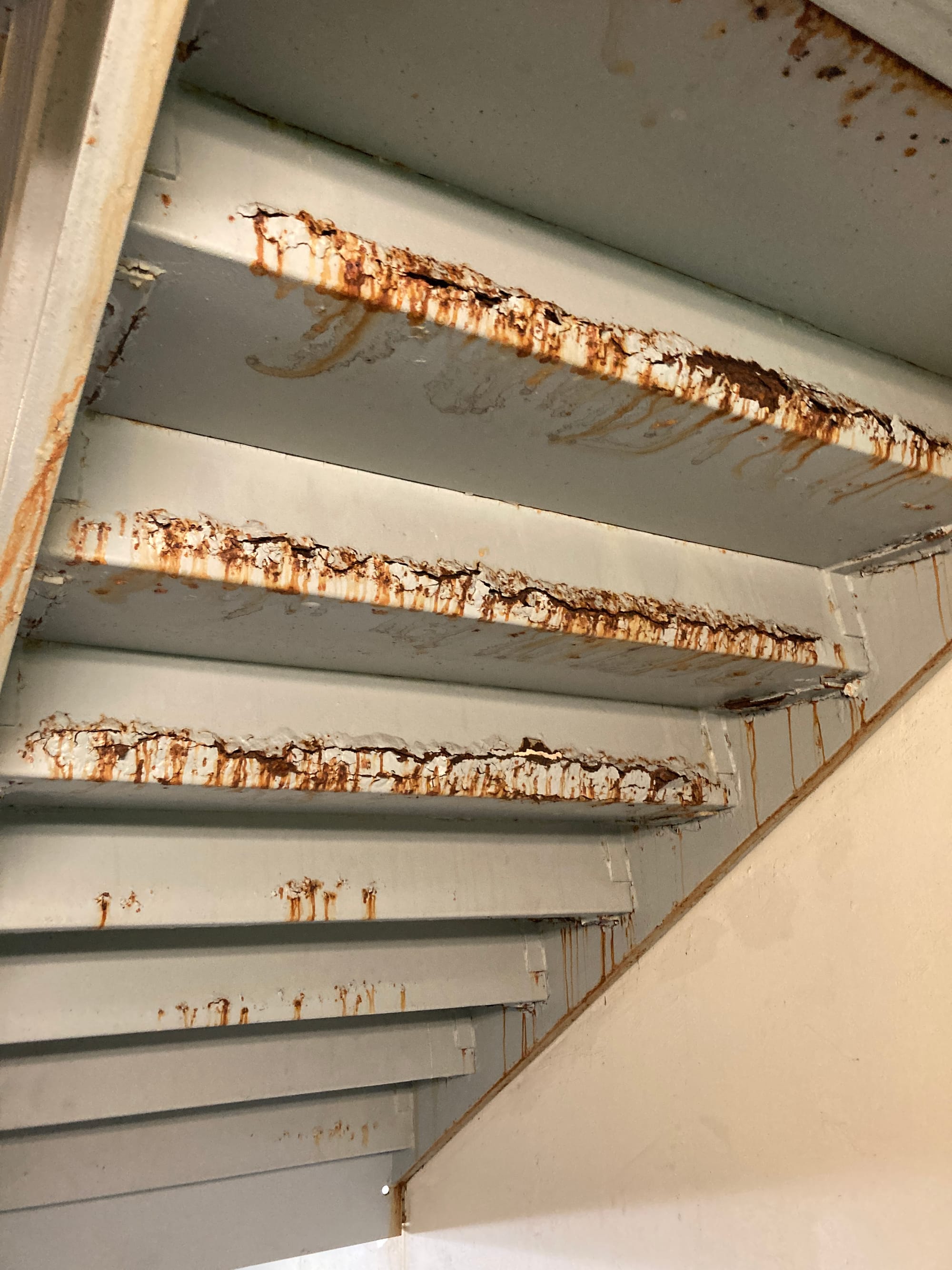 I recently took a walking tour of the Whitaker Garage, which is currently showing many signs of structural stress and repeated flooding.