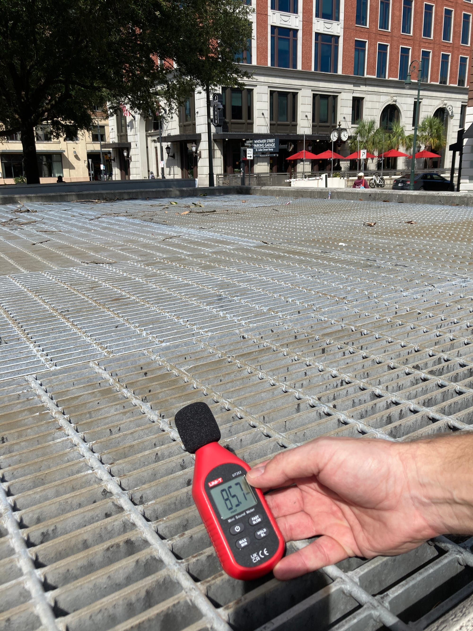 The Whitaker Street Parking Garage was completed in 2009, roughly concurrent with the redesign of Ellis Square.The public stairs down to the lower levels of the garage are rotten from water damage due to constant rain and moisture incursion.Closeup of the public stairs -- some steps have rusted completely through.Huge underground areas of the Whitaker Street Garage are off-limits due to extensive maintenance.These are examples of injection points seen throughout the Whitaker Street Garage, where structural issues are addressed by literally injecting epoxy-type compounds into the existing stressed concrete. The Whitaker Garage has many thousands of these.An example of the extreme water incursion at almost all lower levels of the Whitaker Street Garage. Another example of massive underground water intrusion. This is not unusual in the Whitaker Street Garage.Note the open fissure between floors. You can stick your finger through that rusted out crack.Overhead stress fissure.A typical long, massive stress crack overhead, in one of the lower levels.Another enormous stress crack.Destroyed segment of crumbling concrete due to stress fracture and water incursion.This gaping hole in the concrete ceiling -- which keep in mind is also the floor of the parking level above -- is at least seven inches deep.Another huge hole in the concrete -- at least two inches.All along the floors of the Whitaker Street Garage you see fill-in repairs of long cracks in the concrete, like this one.You see these meters frequently in the Whitaker Street Garage -- measuring the amount of widening of a particular stress fissure in the concrete. All of these areas pictured are publicly viewable and NOT in restricted areas.Another long stress crack repair -- this is not an atypical length for one of these cracks.A key support pillar underground with dozens of injected repair points. What does this tell us about structural integrity of the underground parking levels?Here an entire portion of wall had to be shored up with many injection repair points.This is a couple of inches of standing water in one stairwell leading to a parking level underground. At the time this photo was taken, there was no recent rain in Savannah. The most recent heavy shower had been weeks before. The bottom floor of the Whitaker Street Garage is such a heavy flooding risk that the City had to post this disclaimer. What happens is you get stuck down there during a heavy rain event, and you need to get out using rusted-out stairs with holes in them? Every underground garage needs enormous ventilation fans to bring in air from above to refresh stale/polluted air in the garage. Here are the fans under the southwest corner of the Whitaker Street Garage -- uncleaned and full of debris.This is ELEVEN INCHES of standing water in the basin under the southwest corner of Ellis Square, directly on the other side of the ventilation fan in the previous photo. Again, there had been no recent rain in Savannah when this photo was taken. This basin water was weeks old at a minimum. A view of the same basin with almost a foot of standing water, weeks after any significant rain event.Underground garage ventilation fans require maintenance and produce a significant amount of high-decibel noise. Here are some more aged-looking fans under the Whitaker Street Garage.The ventilation fans in the Whitaker Street Garage reach ear-splitting decibel levels. A reading above 90db, like the fan pictured here, is the equivalent of being next to a passing freight train or a revving Harley Davidson. Continued exposure to this noise level can cause permanent hearing damage. This kind of decibel level is so loud it can be heard aboveground.This fan registers 95.3db. This fan registers an incredible 106.6db -- equivalent to a jet airliner passing a thousand feet over your head. It is literally impossible not to be able to hear this at ground level above. Even aboveground the Whitaker Street Garage reaches over 85db -- equivalent to a loud food blender. This would be heard 24 hours a day in the neighborhood next to Forsyth Park, and clearly audible from the Park itself.As further testament to the City of Savannah's poor track record of responsible maintenance of underground parking garages -- here's a City of Savannah vehicle covered with a layer of dust so thick someone scrawled graffiti in it.And finally, here's another City of Savannah car, belonging to the taxpayers -- encased in dust and defaced with graffiti.