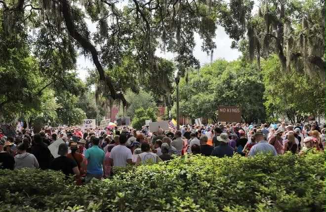 The Savannah protest will start at 1 p.m. at Emmet Park (4089 East Bay Street - intersection of Bay Street and East Broad Street) and is being organized by Coastal Georgia for Democracy, Savannah Indivisible, ACLU Georgia, and Young Democrats of Chatham County.