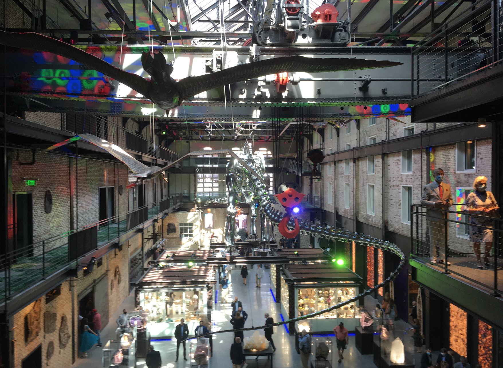 With replica dinosaur skeletons and pterodactyls hanging from the ceiling!